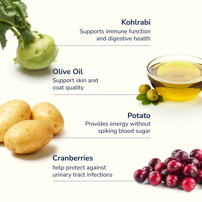Moreover, every ingredient in the Delicious Deer recipe is organic, reflecting our commitment to providing your dog with the cleanest, healthiest food possible. From the vibrant cranberries to the crisp apples and earthy kohlrabi, each component is chosen for its ability to contribute to your dog’s overall well-being. This is not just another dog food—it’s a gourmet experience that you won’t find anywhere else on the market.