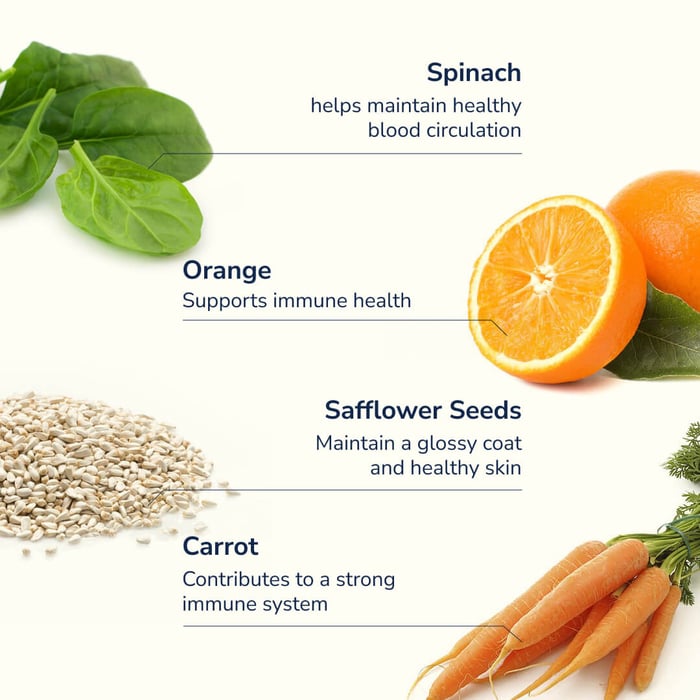 Safflower Seeds: These seeds provide healthy fats that are essential for maintaining a glossy coat and healthy skin.