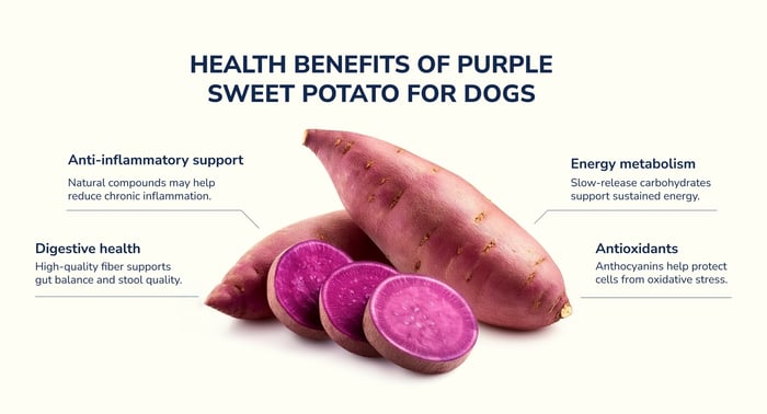 Yes. When cooked and formulated correctly, purple sweet potato is safe for dogs and offers meaningful nutritional benefits, including antioxidants, fiber, and slow-release carbohydrates.