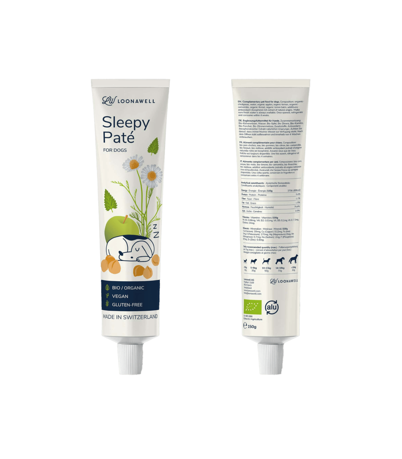 So wie eine Tasse Kamillentee unsere (menschlichen) Nerven nach einem stressigen Tag beruhigen kann, wurde die Bio-Sleepy-Paté von LOONAWELL entwickelt, um unseren geliebten Hundebegleitern bei stressigen Ereignissen eine ähnliche beruhigende Wirkung zu bieten.