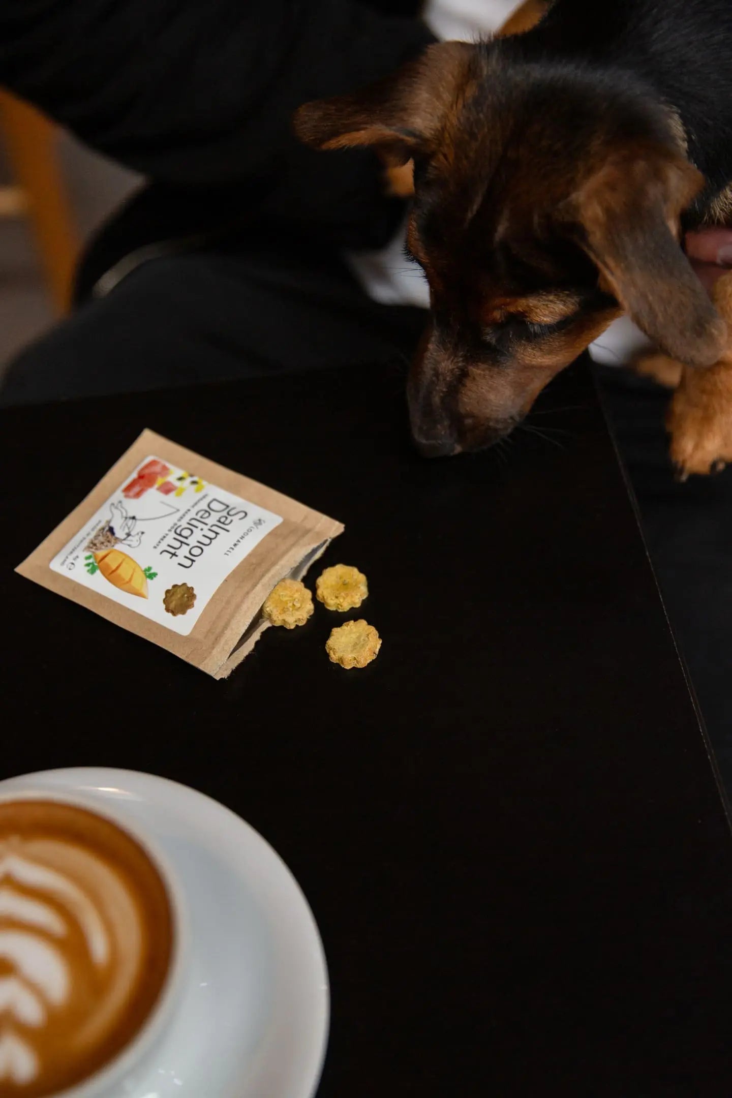 Découvrez l’essence de la qualité à chaque bouchée avec notre pack de bienvenue de friandises cuites au four au saumon et au bœuf. Confectionnée avec soin à partir d’ingrédients bio, chaque friandise incarne notre engagement à offrir à votre chien une gourmandise d’exception, saine et raffinée.