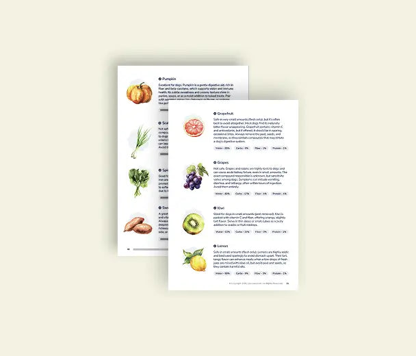 Un guide novateur répertoriant plus de 250 ingrédients du quotidien que vous pouvez (ou non) partager avec votre chien. Chaque fiche présente la valeur nutritionnelle et les notes de goût et d’arôme, pour inspirer votre cuisine.