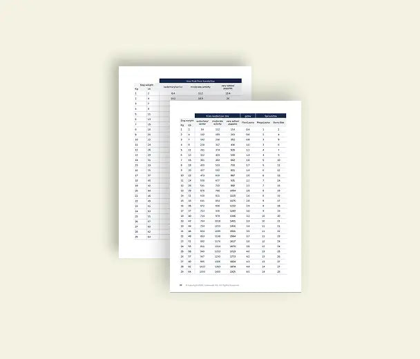 Adapté au poids et au niveau d’activité de votre chien, pour que vous sachiez exactement quelle quantité de chaque recette lui servir.