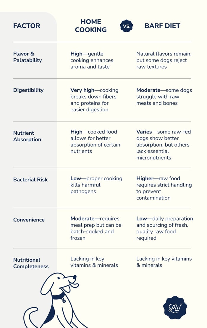 C'è qualcosa di innegabilmente commovente nel preparare un pasto da zero per qualcuno che si ama. Nelle case in cui i cani sono membri cari della famiglia, un numero crescente di proprietari di animali domestici (me compreso 😊) si rivolge alla cucina casalinga o all'alimentazione cruda per fornire ciò che ritengono essere i pasti più freschi e sani possibili. Tuttavia, sebbene il sentimento sia lodevole, la scienza della nutrizione canina racconta una storia più sfumata sulla cucina casalinga rispetto alla dieta BARF.