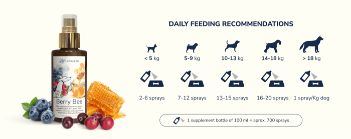 Berry Bee è pensato per i cani a partire dai 3 mesi di età, in particolare per quelli che seguono diete fresche, casalinghe o BARF. Sebbene queste diete siano sane, spesso mancano di nutrienti essenziali. Berry Bee colma questa lacuna, trasformando la dieta naturale del cane in una dieta più completa ed equilibrata.