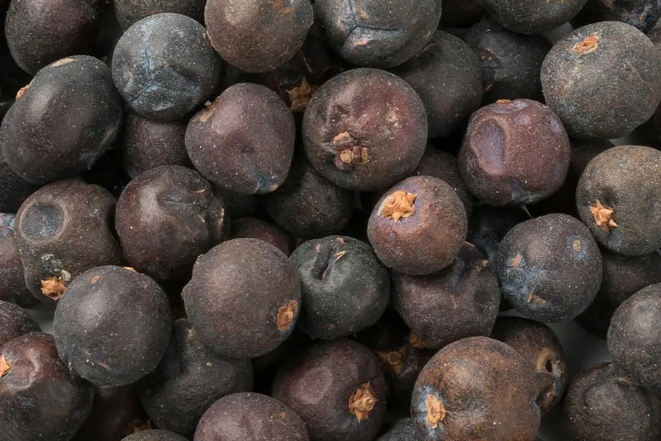 Le bacche di ginepro biologiche offrono proprietà antimicrobiche e favoriscono la salute del tratto urinario.